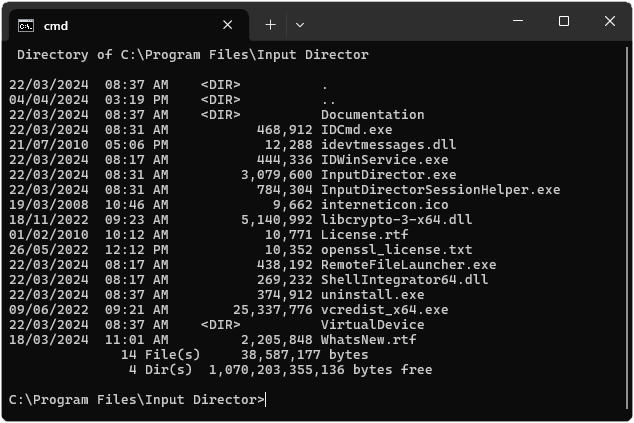 n.b. IDCmd must be run from the Input Director install directory, alongside the rest of the Input Director files.